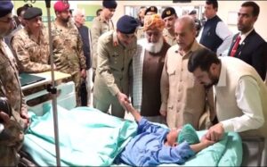 پشاور: وزیراعظم شہباز شریف اور آرمی چیف جنرل عاصم منیر نے پشاو ر کا دورہ کیا، جہاں وزیراعظم کو خیبرپختونخوا کی مجموعی سکیورٹی صورتحال سمیت خار خودکش دھماکےکی تحقیقات پر پیشرفت، منصوبہ سازوں، دہشتگردوں اور سہولت کاروں کے درمیان روابط کے خاتمے اور انسداد دہشت گردی کے اقدامات کے حوالے سے بریفنگ دی گئی۔ تفصیلات کے مطابق وزیر اعظم نے خودکش دھماکوں میں افغان شہریوں کے ملوث ہونے، سرحد پار سے معصوم شہریوں پر بزدلانہ حملوں کی منصوبہ بندی کرنے اور پاکستان دشمن عناصر کی کارروائیوں پر تشویش کا اظہار کیا۔اس موقع پر وزیراعظم کا کہنا تھا کہ افغان عبوری حکومت کو اپنی سرزمین کسی دوسرے ملک میں دہشتگردی کے لئے استعمال ہونے سے روکنے کے لئے ٹھوس اقدامات اٹھانے چاہئیں۔وزیراعظم نے زخمی افراد کو خار سے پشاور منتقل کرنے کے لئے پاک فوج کی کاوشوں کو سراہا۔ وزیراعظم اور آرمی چیف نے زیر علاج زخمی افراد کی عیادت کے لئے سی ایم ایچ کا دورہ بھی کیا اور ان سے صحت کے بارے میں دریافت کیا۔وزیراعظم شہباز شریف نے متعلقہ حکام کو زخمیوں کو مکمل صحت یابی تک علاج معالجے کی ہر بہترین سہولیات فراہم کرنے کی ہدایت کی۔وزیراعظم نے خار خودکش دھماکہ کے متاثرین کے خاندانوں کو یقین دلایا کہ قوم دکھ کی اس گھڑی میں ان کے ساتھ کھڑی ہے اور ان کے نقصان میں برابر کی شریک ہے۔ وزیراعظم کا کہنا تھا کہ دہشت گردوں کے بزدلانہ حملے دہشتگردی کے خاتمہ کے لئے ہمارے عزم کو کمزور نہیں کر سکتے،قوم کے تعاون سے سکیورٹی فورسز اور قانون نافذ کرنے والے ادارے اس بات کو یقینی بنائیں گے کہ بزدلانہ حملوں کے ذمہ داروں کو جلد انصاف کے کٹہرے میں کھڑا کیا جائے گا۔