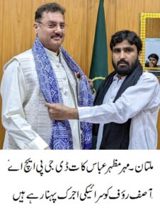ملتان : چیئرمین سرائیکستان نوجوان تحریک مہر مظہر عباس کات نے ڈی جی پی ایچ اے آصف رؤف سے ان کے آفس میں ملاقات کی اور سرائیکی اجرک پہنائی ۔ملاقات میں ملتان میں پارکوں اور پودوں اور شہر کی خوبصورتی پر تفصیلی بات چیت ہوئی ۔ڈی جی نے مہر مظہر کات کو بتایا کہ میری نو ماہ سے کم عرصہ تعیناتی میں ملتان کے پارکوں ۔چوکوں اور فلائی اوورز کو خوبصورت بنایا اور سات ہزار سے زیادہ آٹھ سے دس فٹ کے پودے لگائے ہیں۔ڈی جی نے بتایا کہ زکریا یونیورسٹی کے گیٹ پر ۔دوکت گیٹ چوک۔بابر چوک پر خوبصورت فوارے بنوائے ہیں ۔متی تل روڑ پر تین سو پچاس پودے۔سہو چوک سے سید والا بائی پاس تک نو سو پچاس پودے ۔دولت گیٹ سے نو نمبر اور سید والا بائی پاس میٹرو کے پلر پر سرائیکی وسیب کی ثقافت کو اجاگر کرنے کے لیے پینٹگ کروائی ۔نشتر فلائی اوور پر پینٹگ مکمل ہو گی ھے اب سرائیکی ثقافتی تصاویر پینٹ کروانی ہیں ۔ڈی جی نے مزید بتایا کہ کچہری ۔نو نمبر ۔رشیدہ آباد ۔اور چوک کمہارانوالہ فلائی اوورز پر پلانٹر رکھے ہیں جن میں پھول اور چھوٹے پودے لگائے ہیں۔آصف رؤف نے مہر مظہر کات سے باچیت کرتے ہوئے کہا کہ میں جب تک ڈی جی ہوں پوری ایمان داری سے ملتان کو خوبصورت بنانے کی ہر کوشش کرونگا۔چئیرمین ایس این ٹی مہر مظہر کات نے ڈی جی کو ان کی خدمات کو سراہتے ہوئے سرائیکی اجرک پہنائی۔اس موقع پر مہر مظہر کات نے کہا کہ آصف رؤف جیسے محنتی افسروں کو سرائیکی وسیب کے دارلخلافہ ملتان میں خوش آمدید کہتےاور حوصلہ افزائی کرتے رہیں گے۔مہر مظہر کات نے کہا کہ ڈی جی پی ایچ اے آصف رؤف کے خلاف چند بھتہ خور بلیک ملیر لوگ جھوٹی باتیں پھیلا رہے ہیں اور ان پر جھوٹی الزام تراشیاں کر کے مفاد حاصل کرنا چاہتے ہیں ۔مہر مظہر کات نے کہا کہ میں نے بھی ان الزامات کی تحقیقات کیں ہیں جو سراسر غلط ثابت ہوئی ہیں اگر آصف رؤف پر الزام درست ہوتا تو میں آج ان کو سرائیکی وسیب کی شان سرائیکی اجرک نہ پہناتا ۔مہر مظہر کات نے کہا کہ سرائیکستان نوجوان تحریک ملتان میں ہر بھتہ خور ۔رشوت خور افسروں کے خلاف ھے اور ہم ان افسران کو بھی قدر کی نگاہ سے دیکھتے ہیں جو پوری محنت اور ایمانداری سے کام کرتے ہیں ۔مہر مظہر کات نے کہا کہ سرائیکستان نوجوان تحریک ڈی جی آصف رؤف کے ساتھ کھڑی ھے اور بلیک میلہ شاہ ولی راجپوت سمیت کسی بھتہ خور کو بلیک میل نہیں کرنے دیں گے اور کسی سنی یا شیعہ کو کسی افسر کے خلاف غلط مذہبی کارڈ استعمال کرنے کی اجازت دیں گے