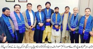 ملتان(صفدربخاری سے) پی ایم اے کے صدر ڈاکٹر معروف سرجن پروفیسر مسعود الروف ہراج،جنرل سیکرٹری ڈاکٹر عمران قیصرانی ،نائب صدر ڈاکٹر اشفاق صدیقی،ایگزیکٹو ممبران ڈاکٹر ذوالقرنین حیدر ،ڈاکٹر شیخ عبد الخالق ،ڈاکٹر وقار نیازی کو سرائیکی راہنما مہر مظہر عباس کات نے مہر اشرف ساقی وینس کے ہمراہ سرائیکی اجرکیں پہنا کر مبارکباد دی ۔اس موقع پر پی ایم اے کے عہدیداروں نے سرائیکی راہنما کو سرائیکی اجرکیں پہنانے پر شکریہ ادا کیا۔ڈاکٹر مسعود الروف ہراج نے کہا کہ پی ایم اے سرائیکی وسیب کے غریب مریضوں کی ہر طرح سے خدمت کریگی اور وسیب کے ہر ہسپتال کے عملہ اور ڈاکٹرز کے حقوق کا تحفظ کریگی۔سرائیکی راہنما مہر مظہر کات نے کہا کہ پی ایم اے ایک مضبوط تنظیم ہے اور ڈاکٹر مسعود الروف ہراج جیسے بہادر اوررحم دل انسان کا مسلسل اس کا صدر بننا سرائیکی وسیب کے لیے باعث افتخار ہے ۔مہر مظہر کات نے کہا کہ سرائیکستان نوجوان تحریک وسیب کے ڈاکٹرز کے حقوق کے لیے پی ایم اے کا بھر پورساتھ دیگی۔سرائیکی راہنما نے پی ایم اے کے عہدیداروں کو یقین دلایا کہ ہم سرائیکی وسیب کی اکلوتی میڈیکل یونیورسٹی نشتر کی وی سی اور دیگر عملہ کے ساتھ تخت لاہور کو کسی صورت بدمعاشی نہیں کرنے دینگے۔مہر مظہر کات نے کہا کہ پورا سرائیکی وسیب وی سی نشتر ڈاکٹر مہناز خاکوانی کے ساتھ کھڑا ہے وی سی ایک وسیب زادی ہیں ہم اس کے خلاف کوئی بغض یا ناانصافی کسی صورت برداشت نہیں کریں گے۔سرائیکی راہنما نے آج سے وسیب کی اکلوتی میڈیکل یونیورسٹی کی وی سی ڈاکٹر مہناز خاکوانی کے خلاف تخت لاہور کے پروپیگنڈا کے خلاف احتجاجی مظاہرے شروع کرنے کا اعلان کیا اور جب تک وسیب کی اکلوتی میڈیکل یونیورسٹی کی وی سی و دیگر عملہ کے خلاف تخت لاہور کی طرف سےکیے گے پروپیگنڈا اور عداوت پر معافی نہیں مانگی جائے گی سرائیکی وسیب کے نوجوان احتجاج جاری رکھیں گے