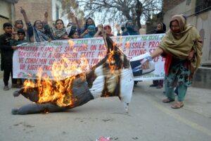 ملتان : مسلم لیگ ن اور پیس کونسل کے زیر اہتمام امریکہ کی پاکستانی ایٹمی اثاثوں پابندی کے خلاف شاہ رکن عالم ٹی چوک پر احتجاجی مظاہرہ کیا گیا اور اس موقع پر امریکی پرچم اور صدر ٹرمپ کا پتلا نذر اتش کیا گیا احتجاجی قیادت مسلم لیگ ن کی سینئر رہنما و ڈویژنل چیئر پرسن انٹرنیشنل پیس کونسل انٹرفیتھ ہارمنی اینڈ ہیومن رائٹس ہے تہمینہ نور نے کی احتجاجی مظاہرے میں عطیہ رب نواز،نورین،فاطمہ،عسکری بیگم،زرینہ سمیت دیگر خواتین نے بڑی تعداد میں شرکت کی اور اس موقع پر امریکہ کے خلاف نعرے بازی کی اس موقع پر تہمینہ نور نے خطاب کرتے ہوئے کہا کہ پاکستان ایٹمی طاقت ہے اور پاک فوج ملک و قوم کا فخر ہے پاکستان کی ازادی خود