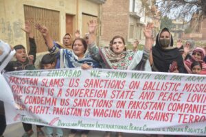 مسلم لیگ ن اور پیس کونسل کے زیر اہتمام امریکہ کی پاکستانی ایٹمی اثاثوں پر پابندی کے خلاف ملتان میں احتجاجی مظاہرہ