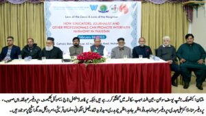 ملتان(صفدربخاری سے) کیتھولک کمیشن برائے بین المذاہب و بین الکلیسائی مکالمہ پاکستان کے زیر اہتمام جرنلسٹ ،وکلاء،پروفیسرز،ڈاکٹرز اور دیگر پروفیشنل بین المذاہب ہم آہنگی میں کیسے کردار ادا کر سکتے ہیں کے موضوع پر مکالمہ کا انعقاد کیا گیا گیامکالمہ کی صدارت کیتھولک بشپ بشپ یوسف سوہن نے کی جبکہ فادر ڈینیئل تاج ،سیموئیل کلیمنٹ ،پروفیسر عبدلقدوس صہیب ،پروفیسر حنا،ڈاکٹر علی مہدی ،پروفیسر عبدالماجد وٹو ،مظہر جاوہد،مظہر چوہدری ،سید نوید شاہ ،علشبہ سحر،رانا عرفان، سرفراز کلیمنٹ ،فیصل تنگوانی ایڈووکیٹ ،سلمان الٰہی قریشی ایڈووکیٹ ،امروز گل ،شازر گل حنا سلمان، پیر عبید صدر پوری سمیت دیگر نے بطور مہمان شرکت کی اس موقع پر گفتگو کرتے ہوئے کیتھولک بشپ یوسف سوہن نے کہا ہے کہ پرامن معاشرہ ملک وقوم کی ترقی کا ضامن ہے پر امن معاشرے کے قیام کے لئے معاشرے میں رہنے والے ہر فرد کو کردار ادا کرنے کی ضرورت ہے خواہ آپ کا تعلق کسی بھی مسلک مذہب یا پروفیشن سے ہووکلا،صحافی ،ڈاکٹرز،اساتذہ ،علماءکرام اور سماجی رہنماﺅں سمیت دیگر پروفیشنل کی ذمہ داری زیادہ بنتی ہے کہ آپ پرامن معاشرے کے قیام کے لئے بھرپور جدوجہد کریں تاکہ ہماری آنے والی نسلوں کو ایک خوبصورت اور پرامن ماحول میسر آ سکے اس موقع پر کیتھولک کمیشن برائے بین المذاہب و بین الکلیسائی مکالمہ پاکستان کے ایگزیکٹیو سکرہٹری سیموئیل کلیمنٹ نے کہا ہے کہ کیتھولک کمیشن برائے بین المذاہب و بین الکلیسائی مکالمہ پاکستان چاہتی ہے کہ پاکستان میں بسنے والے تمام محب وطن اور پر امن لوگوں کو جمع کرکے امن و امان کے قیام کے لئے مشترکہ آواز بلند کریں تاکہ پوری دنیا میں یہ پیغام جا سکے کہ ہم سب ایک ہیں اور ملک وقوم کی ترقی اور پر امن ماحول کے لئے مل جل کر جدوجہد کر رہے ہیں۔