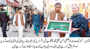 ملتان : ممبر کینٹ بورڈ محمد یعقوب شیرا نے کہا کینٹ کو پرکشش بنانے اور صحت و صفائی کے مثبت اقدامات سے کاروباری اور سیاحتی سرگرمیوں میں اضافہ ہوا اس حوالہ سے پریذیڈنٹ کینٹونمنٹ بورڈ اسٹیشن کمانڈر اور کینٹونمنٹ ایگزیکٹو آفیسر عاطف سلطان کے مثالی اقدامات پر کینٹ کے سماجی و شہری حلقے خراج تحسین پیش کرتے ہیں ان خیالات کا اظہار انہوں نے آسٹریا کی سفیر اینڈریا وکی اور وفد کے ملتان کینٹ خصوصی آمد کے دوران گفتگو کرتے ہوئے کیا وفد نے ملتان کینٹ کے خوشگوار اور محفوظ ماحول کو بہترین سیاحتی ماحول قرار دیا اس دوران ممبر کینٹ بورڈ و ممبر ضلعی امن کمیٹی ملتان محمد یعقوب شیرا نے مہمان سفیر اور وفد کو کینٹ بازار اور اولڈ کینٹ سمیت تاریخی عمارتوں کا دورہ کرایا اور مدینتہ الاولیاء کے ثقافتی بلیو پاٹری اور کپڑوں کی خریداری بھی کرائی اس دوران آسٹریا کی سفیر کو یادگار سوینئر پیش کی وفد کے ہمراہ صاحبزادہ فروز نظامی بھی تھے۔
