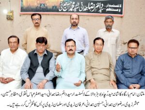 ملتان : امام بارگاہ کاشانہ حیدر ؑچاہ بوہڑ والاکے لائسنسدار و منتظم سید دائم رضا ہمدانی کے زیر اہتمام چار روزہ مجالس عزاء بسلسلہ شہادت حضرت علی علیہ السلام17سے 20 رمضان المبارک بمطابق 18 مارچ تا 21 مارچ 2025 بمقام امام بارگاہ کاشانہ حیدر ؑچاہ بوہڑ والا ملتان میں روزانہ 8-30 بجے شب منعقد ہونگی۔مجالس عزاء سے علامہ ریاض جوہری آف کراچی خطاب فرمائیں گے اور ضیاء حیدر زیدی و برادران مرثیہ خوانی کریں گے۔21رمضان المبارک بمطابق 22 مارچ 2025 بروز ہفتہ صبح 6-00بجے اسی عزاء خانہ پر مجلس عزاء برپا ہوگی اور صبح 7-00بجے جلوس شبیہ تابوت حضرت علی علیہ السلام برآمد ہوگا جو اپنے مقررہ راستوں سے گزرتا ہوا امام بارگاہ کا شانہ شبیر ؑ لال کرتی ملتان کینٹ میں اختتام پذیر ہوگا۔یوم شہادت حضرت علی علیہ السلام کے حوالے سے لائسنسدار سید دائم رضا ہمدانی، سید اصغر عباس نقوی، مظاہر حسین، مبشر زیدی، رضوان ہمدانی، حسنین ہمدانی، عرفان زیدی اور سلمان زیدی نے پریس کانفرنس کرتے ہوئے کہا کہ ماتمی جلوس کے روٹس پر تاحال سڑکوں کی مرمت،لائٹنگ اور صفائی کے انتظامات نامکمل ہیں۔ لہٰذا انتظامیہ سے گذارش ہے کہ فوری طور پر روٹس کا معائنہ کیا جائے اور بروقت انتظامات مکمل کرنے کے احکامات صادر کئے جائیں اور ملتان کے تمام جلوسوں بالخصوص ملتان کینٹ کے مرکزی جلوس کے لیے سیکیورٹی کے فول پروف انتظامات کئے جائیں۔