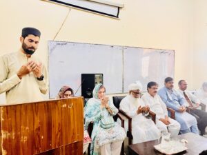 ملتان(صفدربخاری سے) بی زیڈ یو میں شعبہ سپورٹس سائنسز کی چئیرپرسن و پروفیسر آف آکنامکس ڈاکٹر سیدہ عذرا بتول صاحبہ کے بڑے بھائی ڈاکٹر سید زوار حسین شاہ جو کہ بقضائے الہی سے24اپریل بروز جمعتہ المبارک کو انتقال فرما گئے تھے اُنکی روح کو ایصالِ ثواب کیلئے سپورٹس سائنسز ڈیپارٹمنٹ میں ڈاکٹر سیدہ عذرا بتول صاحبہ کے (ایم فِل ) کے سٹوڈنٹ ملک ارشد جمشید نے منگل کی صبح محفلِ قرآن خوآنی و دُعا ئیہ تقریب کا نہایت خوبصورت انعقاد و تمام ترانتظامات کئے جس میں لنگر کا بھی وسیع انتظام کیا گیا۔تقریب میں مختلف شعبہ جات سے تعلق رکھنے والے فیکلٹی ممبران، طلباء و طالبات، اور دیگر عملے نے بھرپور شرکت کی۔ اس موقع پر پروفیسر ڈاکٹر صاعقہ امتیاز، پروفیسر ڈاکٹر شکیل احمد، ڈاکٹر مظہر، ڈاکٹر عامر نواز، ڈاکٹر سفینہ ناز، ڈاکٹر انیلا حمید، ڈاکٹر میمونہ،ڈاکٹر عذرا، ڈاکٹر