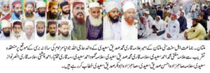 ملتان : جماعت اہل سنت کے راہنما علامہ مفتی محمد احمد سعیدی،علامہ قاری محمد صدیق سعیدی اورعلامہ محمود احمد سعیدی نے کہا ہے کہ ہر ذی روح نے موت کا ذائقہ چھکنا ہے نماز پنجگانہ ادا کریں اور قرآن پاک کی تلاوت کریں دنیا و آخرت میں کامیابی کے لئے ہمیں نیک اعمال کرنے چاہیے اس میں ہی ہم سب کی بھلائی ہے ان خیالات کا اظہار انہوں نے جماعت اہل سنت سٹی ملتان کے امیرعلامہ قاری محمد صدیق سعیدی کے والد حاجی اللہ جوایا مرحوم کی سالانہ برسی کے موقع پر منعقدہ تقریب سے خطاب کرتے ہوئے کیااس موقع پر علامہ قاری مختیار احمد چشتی،علامہ قاری انصر نواز سعیدی،علامہ صاحبزادہ احسن صدیق سعیدی،صاحبزادہ ابوبکر صدیق سعیدی نے بھی خطاب کیا آخر میں مرحوم کی بلندی درجات کیلئے دعا کی گی۔