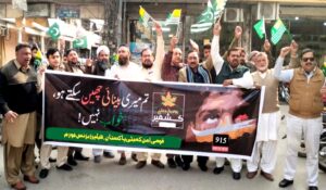 ملتان (صفدربخاری سے) 5 فروری یوم یکجہتی کشمیر کےسلسلہ میں ہیلپرزبزنس فورم، قومی امن کمیٹی پاکستان اور انجمن تاجران خان پلازہ کینٹ کےزیراہتمام خان پلازہ چوک پر منعقدہ مظاہرہ سے خطاب کرتے ہوئے چیف کوآرڈینیٹر غضنفر ملک، چیئرمین خان پلازہ ظفر اقبال خان، صدربلال احمد، کلب عابد خان اور خواجہ دلشاد احمد نے کہا 915 دنوں سے مقبوضہ کشمیر میں بھارتی فوج نے کرفیو نافذ کررکھا ہے مظلوم کشمیریوں پرمظالم کی انتہا اور نسل کشی کی جارہی ہے بھارتی فوج کی ریاستی دہشت گری پر اقوام متحدہ اور عالمی برادری کی مجرمانہ خاموشی افسوسناک اور قابل مذمت ہے پاکستان کا بچہ بچہ مقبوضہ کشمیر کے مظلوم مسلمانوں کے ساتھ ہے اور عالمی برادری سے مطالبہ کرتے ہیں مقبوضہ کشمیر میں انسانی حقوق کی پامالی بند اور اقوام متحدہ کی قرار دادوں کے مطابق عمل درآمد کرتےہوئےکشمیریوں کوحق خودارادیت دیاجائے