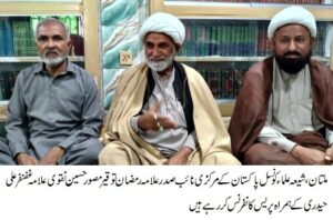 ملتان: شیعہ علماء کونسل پاکستان کے مرکزی نائب صدر علامہ رمضان توقیر نے کہا ہے کہ علماۓ کرام نے ہمیشہ دینِ اسلام کی صحیح تعلیمات کو عام کرنے، اتحادِ امت کو فروغ دینے اور فرقہ واریت کے خاتمے کے لیے مثبت کردار ادا کیا ہے امریکہ اسرائیل کی جنگ میں سب سے بڑا نقصان ٹرمپ اور نیتن یاہو کا ہوا ہے کیونکہ اس جنگ نے ملک سے شیعہ سنی اختلاف کا گلا گھونٹ دیا ہے اب کوئی ملک دشمن قوت چاہے بھی تو فرقہ واریت کو ہوا نہیں دے سکتی فیلڈ مارشل جنرل سید عاصم منیر کی سر براہی میں پاک آرمی کے شہداء کی قربانیاں قوم کبھی فراموش نہیں کر سکتی اس وقت امت مسلمہ کو جو موجودہ درپیش مسائل ہیں ان کے اتحاد کے لیے بالخصوص ا ایران امریکہ جنگ میں امن اور صلح کے لیے پاکستان کے کردار کو ہم سراہتے ہیں بالخصوص فیلڈ مارشل حافظ سید عاصم منیر کا انتہائی مثبت قدم ہے صلح میں عالمی سطح پر آنے والے وقتوں میں سنگ میل ثابت ہوگا اور پوری دنیا میں بھی امن کی فضا پیدا ہوگی خصوصاً امت مسلمہ اور تمام اسلامی ممالک کے اندر بھی ایک اتحاد کی فضا پیدا ہوگی پاکستان کا قیام امن کے لیے کلیدی کردار پوری دنیا کے مسلمانوں کے لیے امن کا پیغام بھی ہے ان خیالات کا اظہار انہوں نے شیعہ علماء کونسل کے مرکزی ڈپٹی سیکرٹری جنرل مصور حسین نقوی اور ضلع ملتان کے صدر علامہ غضنفر علی حیدری نے مدرسہ مصباح العلوم الجعفریہ سوتری وٹ ملتان میں پریس کانفرنس کرتے ہوئے کہا کہ انہوں نے مزید کہا کہ پاکستان دشمن یہ چاہتے ہیں کہ یہ فرقہ واریت دوبارہ سے سر اٹھائے ملک میں بدامنی ہو تاکہ ہم اپنے مقاصد کو پورا کر سکیں لیکن ہم اپنے وطن کے امن کو کبھی بھی خراب نہیں ہونے دیں گے قائد ملت جعفریہ پاکستان علامہ سید ساجد علی نقوی نے ہمیشہ فرقہ واریت کی نفی کی ہے اور اس کے لیے انہوں نے ہمیشہ مثبت کردار ادا کیا ہے وطن میں تمام مسالک شیعہ سنی نے وطن کی خاطر ہمیشہ امن کے لیے کردار ادا کیا ہے اب اگر کوئی فرقہ واریت کی بات کرے گا تو اس کا کردار وطن دشمنی ہی سمجھا جائے گا انہوں نے کہا کہ علماۓ کرام اپنے خطبات، دروس اور اصلاحی سرگرمیوں کے ذریعے معاشرے میں برداشت، بھائی چارے اور ہم آہنگی کو مضبوط بنا رہے ہیں۔ اسی طرح پاک فوج کی ملک کے دفاع کے لیے دی جانے والی قربانیاں پوری قوم کے لیے باعثِ فخر ہیں۔ سرحدوں کی حفاظت ہو یا دہشت گردی کے خلاف جنگ، افواجِ پاکستان نے ہمیشہ جانوں کا نذرانہ پیش کر کے وطنِ عزیز کی سلامتی کو یقینی بنایا ہے۔ افواج پاکستان نے ملک کے اندرونی اور بیرونی دشمنوں سے نمٹنے کے لیئے ٹھوس پالیسی بنا کے وطن دشمنوں کے خلاف اقدامات کیے ہیں ضرورت اس امر کی ہے کہ تمام طبقات باہمی تعاون، رواداری اور حب الوطنی کے جذبے کے ساتھ مل کر کام کریں تاکہ پاکستان کو ایک مضبوط، پرامن اور خوشحال ملک بنایا جا سکے وطن عزیز پاکستان کی سلامتی ترقی و خوشحالی اور امن و امان کے قیام کے لیے ہم سب متحد ہیں۔