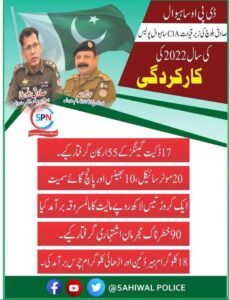 سی آئی اے ساہیوال پولیس کی سال 2022 کی ماہِ نومبر تک کی کارکردگی