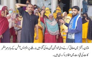 ملتان نشتر ہسپتال میں صفائی کرنے والی درجنوں غریب خواتین تین ماہ کی تنخواہ سے محروم،،متاثرہ خواتین کا احتجاجی مظاہرہ