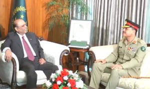 صدر آصف زرداری اور آرمی چیف جنرل عاصم منیرکی ملاقات،،،آرمی چیف جنرل سید عاصم منیر نے دہشت گردی کے خلاف ملک میں جاری فوجی آپریشنز سے آگاہ کیا