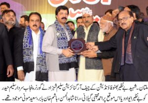 گورنر پنجاب کاملتان دورہ : شہید بے نظیر بھٹو فاؤنڈیشن کے چیف آرگنائزیشن سلیم شہزاد نے گورنر پنجاب سردار سلیم حیدر کو بے نظیر ایواڑ دیا