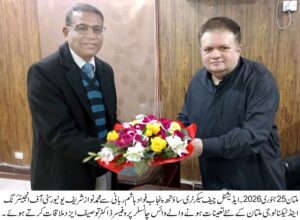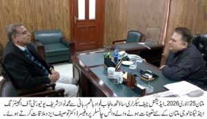 ایڈیشنل چیف سیکرٹری ساؤتھ پنجاب سے یو ای ٹی ملتان کے نو تعینات وائس چانسلر کی ملاقات، لاڑ کیمپس کے مسائل سے آگاہ