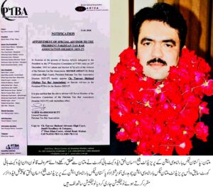 چوہدری تنویر شہزاد پاکستان ٹیکس بار کے صدر کے اسپیشل ایڈوائزر مقرر ، نوٹیفکیشن جاری، وکلاء کی مبارکباد