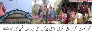 علی پور (محمد سمیع خان ) گورنمنٹ گرلز ہائی سکول علی پور میں فن گالا کی رنگا رنگ تقریب کا آغاز ، تقریب میں شہر کی معزز شخصیات نے شرکت کی ، پروگرام میں تعلیمی ، ادبی اور ثقافتی پروگرام پیش کئیے گئے تفصیل کے مطابق گورنمنٹ گرلز ہائی سکول علی میں فن گالا کی رنگا رنگ تقریب کا انعقاد کیا گیا ، تقریب کا آغاز تلاوتِ کلامِ پاک سے ہوا، جس کے بعد طالبات نے مختلف تعلیمی، ادبی اور ثقافتی پروگرام پیش کیے جنہیں حاضرین نے بے حد سراہا۔اس موقع پر سابق طالبات (Alumnae) اور ریٹائرڈ اساتذہ نے بطور مہمان اعزاز شرکت کی، جن کی موجودگی نے تقریب کو مزید وقار بخشا ، تقریب کی مہمانِ خصوصی مسز میمونہ عامر طلال خان صاحبہ نے طالبات اور اساتذہ کی کاوشوں کی تعریف کی۔ تقریب کی صدارت رابعہ ہاشم نے کی، جنہوں نے کامیاب انعقاد پر اپنی ٹیم کو خراجِ تحسین پیش کیا ، آخر میں مہمان خصوصی مسسز عامر طلال خان گوپانگ کا کہنا تھا کہ اس طرح کے فن گالا کے پروگرام طالبات کی تخلیقی صلاحیتوں کو اجاگر کرنے کا بہترین مواقعے فراہم کرتے ہیں
