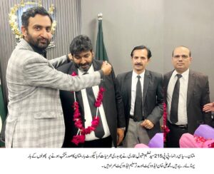 ملتان: سیاسی رہنماء پی پی 215 سید ضغیم مقبول بخاری نے چوہدری عمر حیات کو ہائیکورٹ بار ملتان کا صدر منتخب ہونے پر اُن کے چیمبر میں ملاقات کر کے مبارکباد دی۔ اس موقع پر انہوں نے نو منتخب صدر کو پھولوں کا گلدستہ پیش کیا اور ہار پہنائے۔سید ضغیم مقبول بخاری نے کہا کہ چوہدری عمر حیات کی کامیابی اُن کی پیشہ ورانہ صلاحیتوں، دیانتداری اور وکلاء برادری کے اعتماد کا ثبوت ہے۔ انہوں نے امید ظاہر کی کہ ان کی قیادت میں ہائیکورٹ بار ملتان وکلاء کے مسائل کے حل اور انصاف کی فراہمی کے لیے مزید مؤثر کردار ادا کرے گی۔ چوہدری عمر حیات نے مبارکباد اور نیک تمناؤں پر سید ضغیم مقبول بخاری کا شکریہ ادا کرتے ہوئے کہا کہ وہ وکلاء برادری کی توقعات پر پورا اترنے کی بھرپور کوشش کریں گے اور بار اور بینچ کے باہمی تعاون کو فروغ دیں گے۔اس موقع پر محمد علی خان ایڈووکیٹ سپریم کورٹ اور مدثر سلیم ایڈووکیٹ ہائیکورٹ بھی موجود تھے جنہوں نے نو منتخب صدر کو مبارکباد پیش کی اور نیک خواہشات کا اظہار کیا۔
