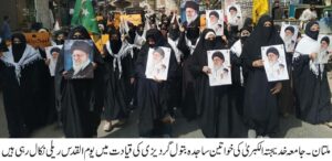 ملتان: عالمی یوم القدس کے موقع پر جامعہ خدیجتہ الکبریٰ چوک کمہارانوالہ کی طالبات نے خانیوال روڑ پر احتجاجی ریلی نکالی۔ ریلی کی قیادت جامعہ خدیجتہ الکبریٰ کی پرنسپل خانم تصدق زہرا قاضی اور معلمہ عالمہ سیدہ ساجدہ بتول گردیزی نے کی۔ریلی میں خواتین نے شہید رہبر سید علی خامنہ ای اور فلسطین کے شہداء کی تصویروں والے پینا فلیکس اٹھا رکھے تھے ریلی میں شریک خواتین نے مردہ باد امریکہ ،مردہ باد اسرائیل اور جنگ رہے گی جنگ رہے گی فلسطین کی آزادی تک جنگ رہے گی کی فلک شگاف نعرے بازی کی ریلی کے وقت چوک کمہارانوالہ ٹریفک کے لیے مکمل طور پر بند رہا ۔اس موقع پر یوم القدس خواتین کی ریلی سے خانم تصدق زہرا قاضی اور سیدہ ساجدہ بتول گردیزی نے خطاب کرتے ہوئے کہا کہ ہم مظلوم فلسطینیوں کے ساتھ کھڑے ہیں کیونکہ ہمارے رہبر امام خمینی اور سید علی خامنہ ای نے ساری زندگی مظلوم فلسطینیوں کے حق کے لیے اور ظالم اسرائیل کے خلاف جدوجہد کرتے ہوئے گزار دی۔انہوں نے کہا کہ رہبر سید علی خامنہ ای نے اپنے اہل و عیال سمیت جان قربان کر دی ہے مگر فلسطین کی آزادی کی جدوجہد سے پیچھے نہیں ہٹے ۔انہوں نے کہا کہ ایران امریکہ و اسرائیل کو شکست فاش دے رہا ہے اور اب فلسطین اور قبلہ اول کی آزادی زیادہ دور نہیں ہے ریلی کی خواتین نے شہید رہبر سید علی خامنہ ای کو خراج تحسین پیش کیا اور نئے رہبر سید مجتبیٰ خامنہ ای قوم بڑھاؤ ملت تمہارے ساتھ ہے کے نعرے بھی لگائے آخر میں امریکہ و اسرائیل کے پرچم نذر آتش کیے گے ریلی میں کثیر تعداد میں خواتین نے شرکت کی
