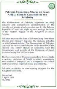 پاکستان سعودیہ عرب پہ ہونے والے ان حملوں کی نہ صرف بھرپور مذمت کرتا ہے بلکہ فریقین کی طرف سے صبر وتحمل کا خواہشمند ہے