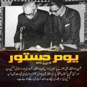 دستور کی پاسداری میں ہی ملکی سلامتی اور عوامی خوشحالی پنہاں ہے ۔ جئے پاکستان جئے بھٹو جئے عوام